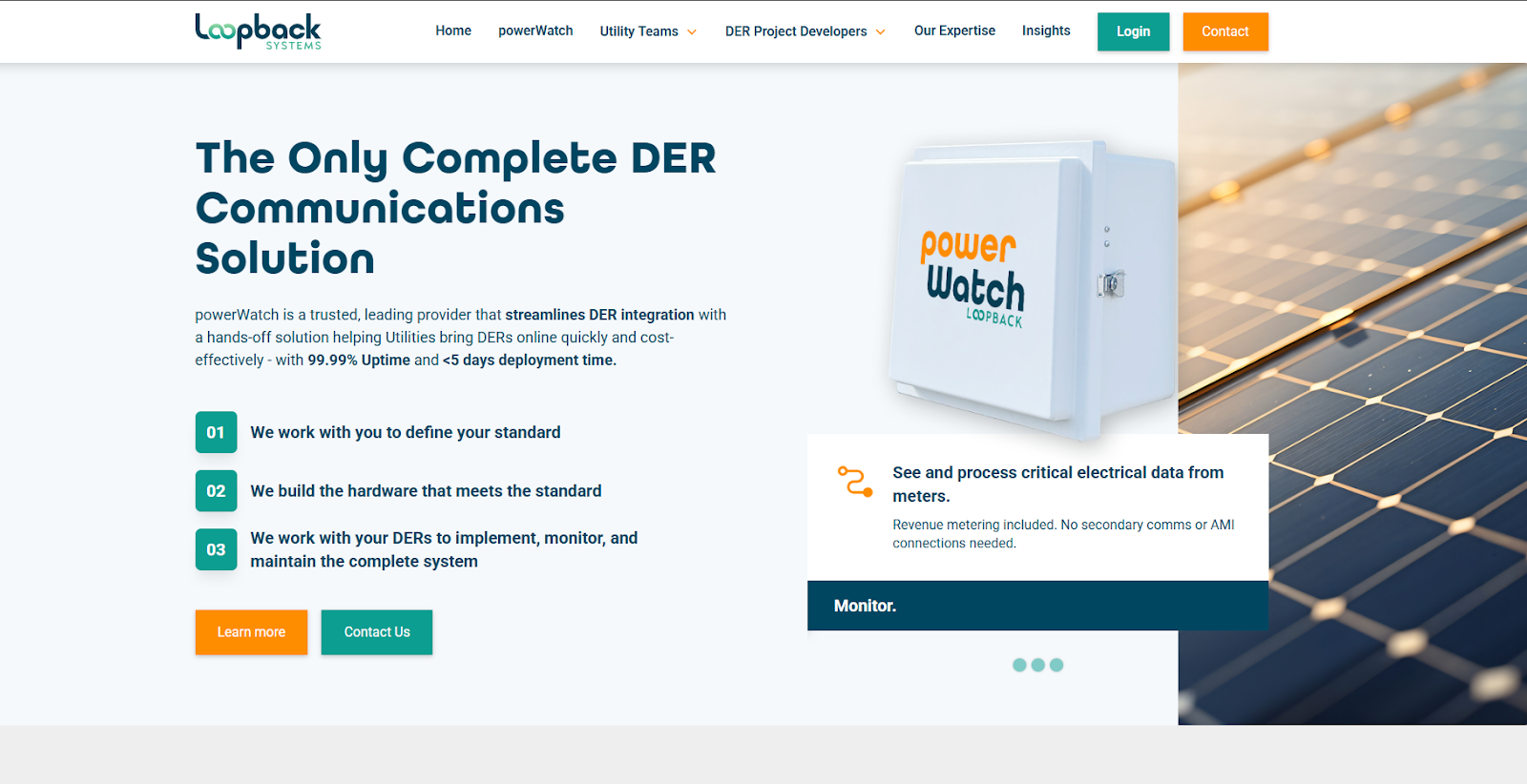 Loopback Systems delivers communication and monitoring solutions for Utilities integrating Distributed Energy Resources (DERs). Their flagship product, powerWatch, gives utilities a direct, encrypted SCADA connection to DER sites, eliminating complexity, delays, and the OpEx burden of traditional integration.