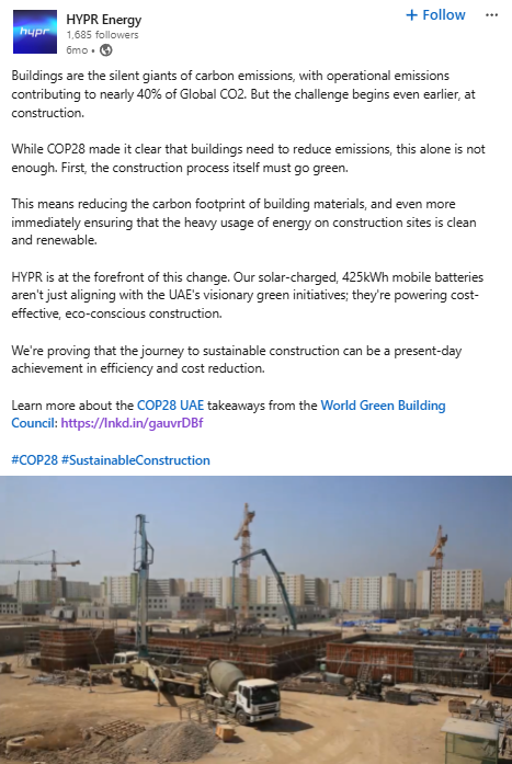 At the same time, we identified 25 regional and international voices already discussing distributed and mobile power during the COP28 cycle. Our aim was not mass outreach but selective engagement. By joining active conversations with genuine insights from Hypr’s engineers, we increased exposure within credible circles.