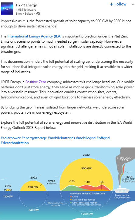 By creating and amplifying content that addressed pain points like energy distribution, Hypr Energy became a recognized voice on LinkedIn. Posts discussing mobile grids and renewable energy solutions gained significant traction among energy professionals globally and helped us position as leaders in Cleantech